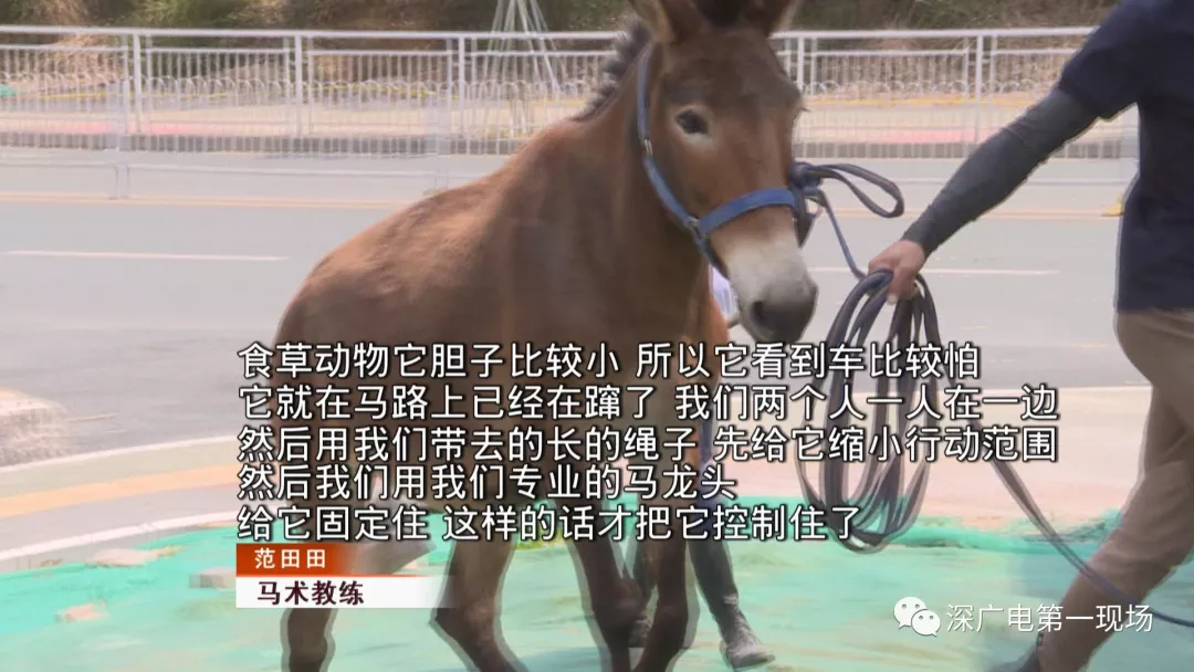 馴馬師馴騾子,終于安撫了焦慮情緒,所幸觀瀾山水田園馬場(chǎng)的工作人員在接到消息后立即趕到現(xiàn)場(chǎng),及時(shí)安撫了已經(jīng)處在焦躁邊緣的騾子。
