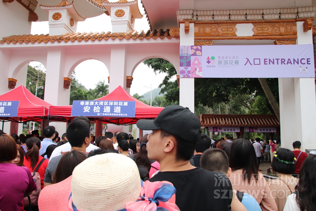 仙湖植物園入口處,排隊的人需經(jīng)過安檢,再進入檢票通道