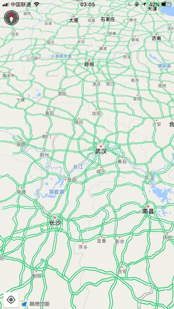凌晨2點(diǎn)58分,北京周邊,高德地圖上看,一片綠色,讓人覺(jué)得特別舒服。