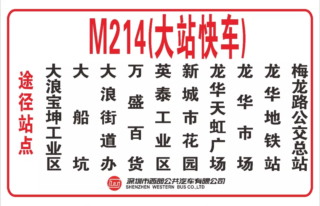 停靠:大浪寶坤工業(yè)區(qū)、大船坑、大浪街道辦、萬盛百貨、英泰工業(yè)區(qū)、新城市花園、龍華天虹商場、龍華市場、龍華地鐵站