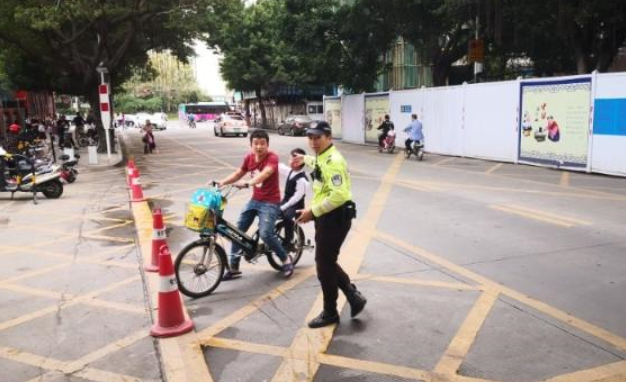 近日,深圳交警重點管理家長騎電動車接送學生不佩戴頭盔現(xiàn)象
