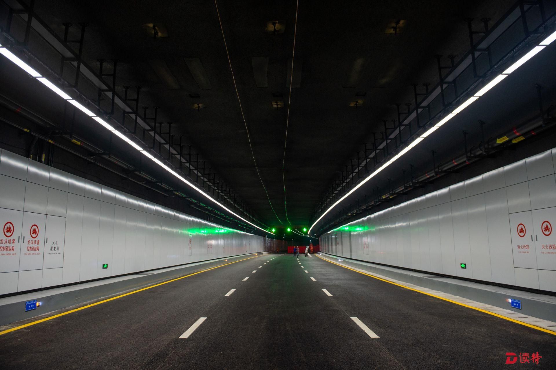 4月16日,讀特記者從臨海大道與前灣三路路口附近乘車進(jìn)入地下道路,看到前海地下道路已經(jīng)實(shí)現(xiàn)主體隧道貫通,項(xiàng)目進(jìn)入裝飾裝修和機(jī)電設(shè)備安裝階段,工人正在隧道內(nèi)安裝照明、通風(fēng)、排水、消防等設(shè)施。在項(xiàng)目工程樣版段,記者看到隧道兩側(cè)的已經(jīng)裝好搪瓷鋼板,頂部的連續(xù)燈帶和交通指示燈也已經(jīng)安裝到位,地面上也已經(jīng)劃好了分道線。中鐵四局機(jī)電公司相關(guān)負(fù)責(zé)人表示,目前前海地下道路機(jī)電裝修工程樣板已經(jīng)順利通過驗(yàn)收,為接下來大面積機(jī)電裝修施工提供了標(biāo)準(zhǔn)指引。該負(fù)責(zé)人表示:“全線共安排了一百多名工人,分區(qū)域進(jìn)行設(shè)備安裝和裝飾裝修,將確保項(xiàng)目年底竣工、2020年初通車,為前海發(fā)展提供更好交通保障?!?/p>