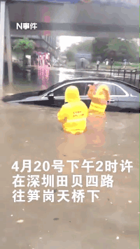 連日暴雨襲城,4月20日下午2時(shí)許,一深圳市民開(kāi)車(chē)行駛到田貝四路往筍崗天橋下時(shí),車(chē)已經(jīng)有大半被水浸沒(méi)。