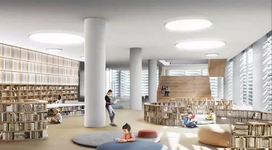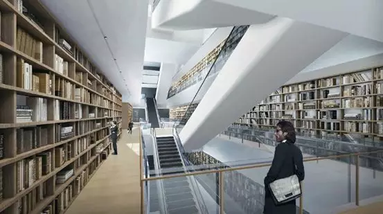 第二圖書館擁有全國最大的地下智能立體書庫,通過無線定位,物流小車自動存取,提高圖書的利用率,同時設(shè)置觀察窗,給市民提供學(xué)習(xí)參觀的機會,將智慧存取寓教于樂,同時還設(shè)置自助圖書館,為讀者提供便利條件;