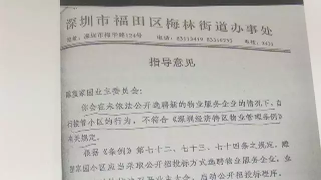 內(nèi)容顯示:業(yè)委會在未公開選聘新物業(yè)公司的情況下,自行接管小區(qū)的行為,不符合相關(guān)法規(guī)規(guī)定??芍煜壬f,這份文件的真實性有待核實。而發(fā)出這份文件的業(yè)主卻堅稱,文件的照片是當年在街道辦辦公室拍的,不可能有假。