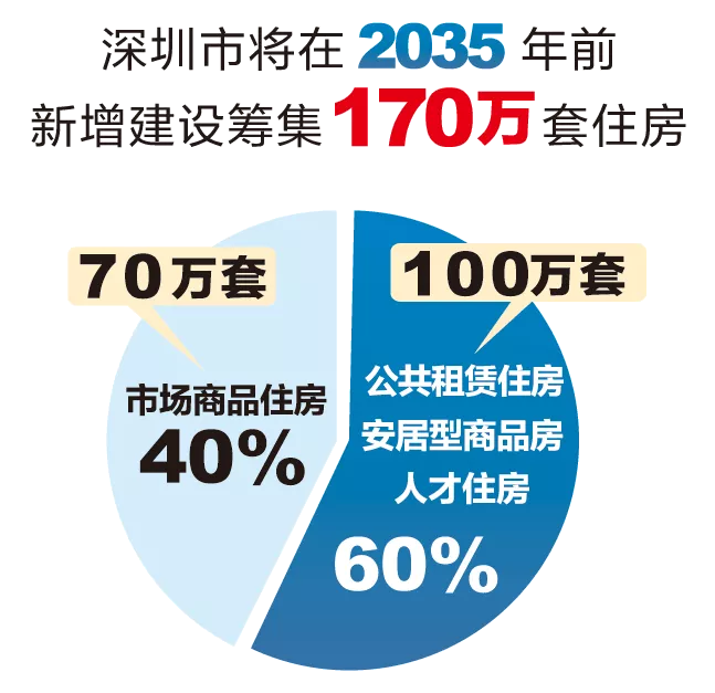 市住建局相關(guān)負(fù)責(zé)人介紹,2018年8月,市政府出臺(tái)了《關(guān)于深化住房制度改革加快建立多主體供給多渠道保障租購(gòu)并舉的住房供應(yīng)與保障體系的意見》(以下簡(jiǎn)稱“主文件”)。新時(shí)代,深圳市將針對(duì)不同收入水平的居民和專業(yè)人才等各類群體,著力構(gòu)建多層次、差異化、全覆蓋的住房供應(yīng)與保障體系,努力實(shí)現(xiàn)全體市民住有所居。“主文件”提出深圳市將在2035年前新增建設(shè)籌集170萬(wàn)套住房,其中:市場(chǎng)商品住房70萬(wàn)套,占40%左右;公租房、安居型商品房和人才住房共100萬(wàn)套,占60%左右。
