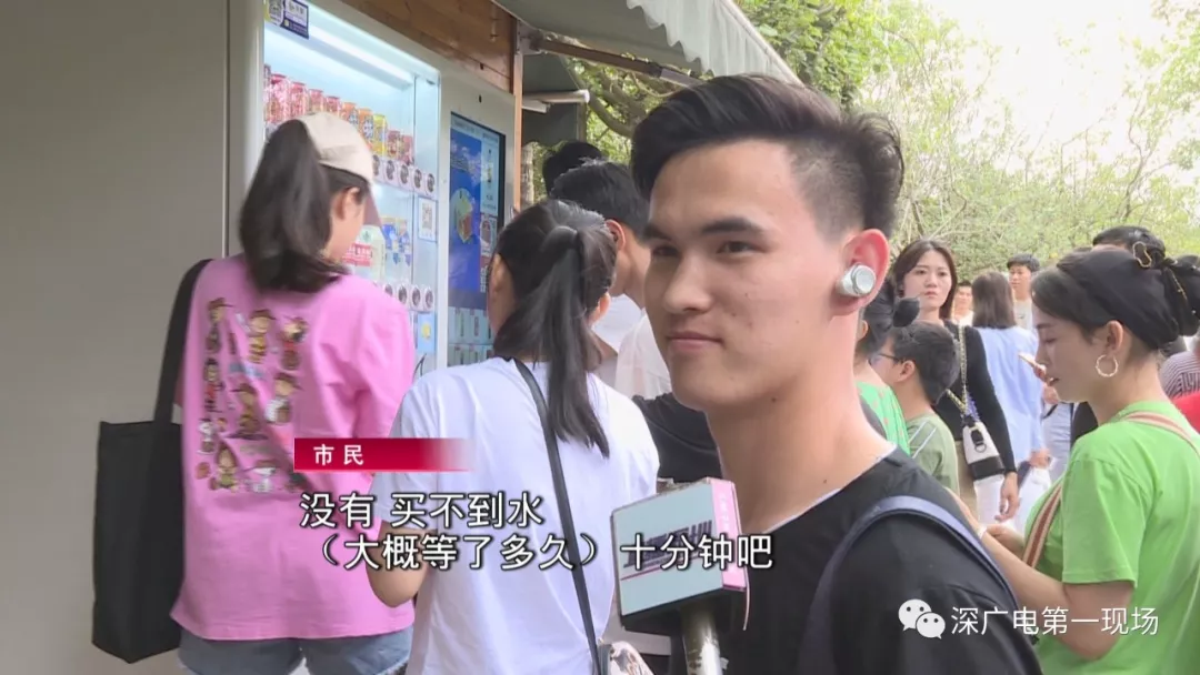 五一假期第一天,就有不少的市民朋友報(bào)料說,深圳灣公園人流爆棚,到處都是人擠人。下午5點(diǎn),記者來到園區(qū)內(nèi)的自動售賣機(jī)旁,發(fā)現(xiàn)已經(jīng)擠滿了人,不少人正在排隊(duì)買水。