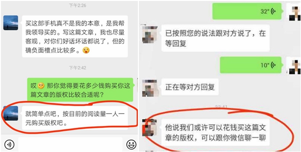 記者問:柔宇提到自媒體作者要求按閱讀量索要版權(quán)費(fèi),柔宇已報(bào)案。請問,憑微信聊天記錄頁面是否形成證據(jù)鏈,法院會(huì)采信嗎?
