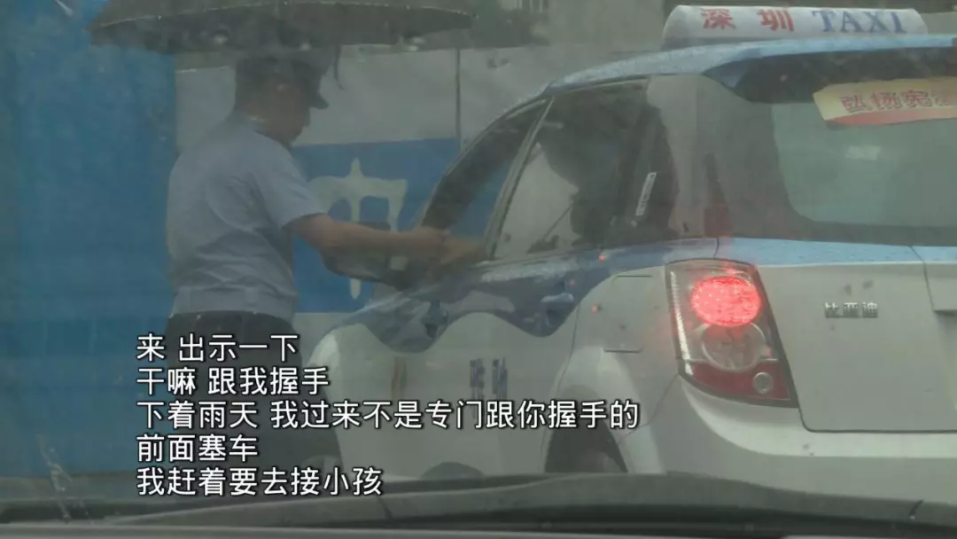 交警看到這一情況,趕忙上前制止并要求的士司機出示相關(guān)證件,有可能是司機太過緊張,出現(xiàn)了滑稽的一幕。面對交警伸過來的手,這名司機也主動伸手,和交警握起手來完全忘記了提供證件的事。