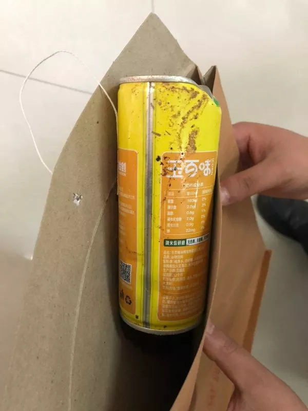 記者在小區(qū)物業(yè)管理處,見到了這個被封存的易拉罐,原來當時拋下來的時候,這個罐子內(nèi)還有部分未喝完的飲料,增加了罐子的重量。