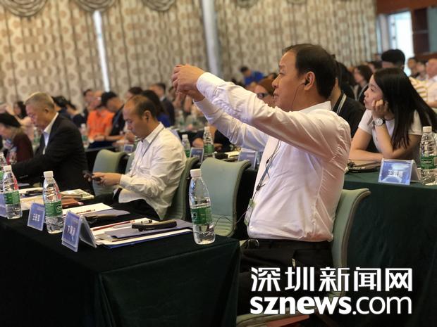 深圳報(bào)業(yè)集團(tuán)總經(jīng)理、深圳華薈國際文化傳播有限公司董事長王躍軍正認(rèn)真地聽專家的演講