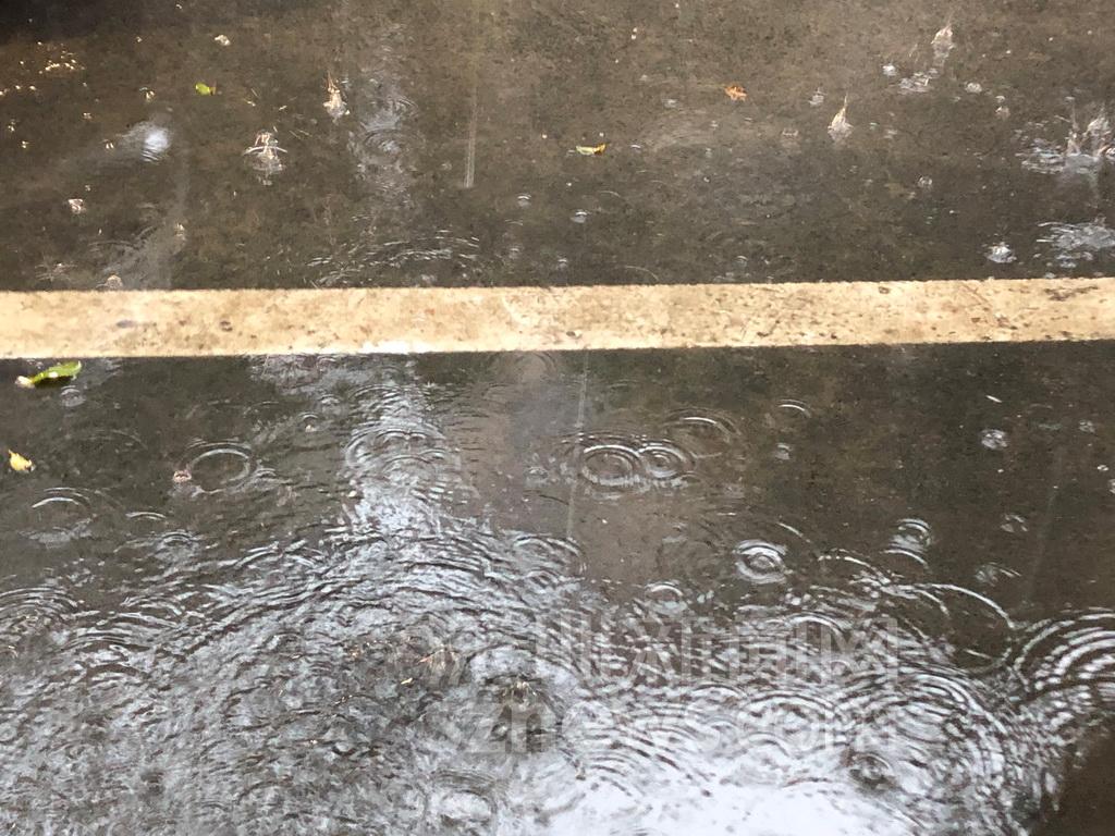17時左右,松崗街道下起了陣雨。(記者 邵媛媛 攝)