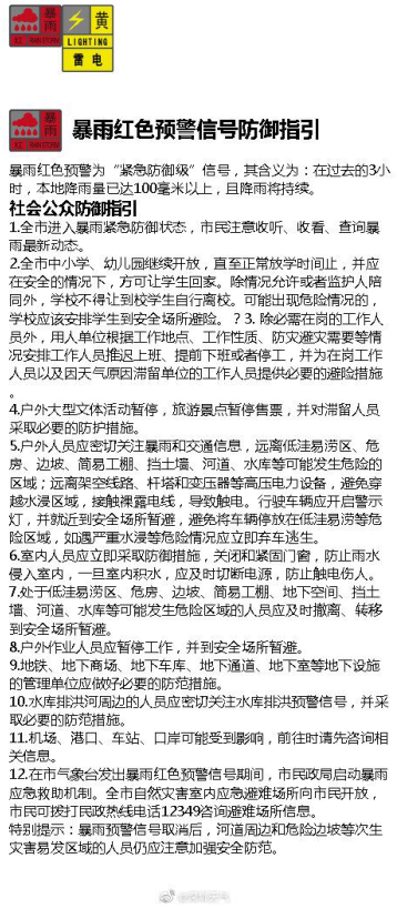 暴雨紅色預(yù)警信號(hào)防御指引