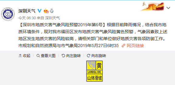 深圳市地質(zhì)災(zāi)害氣象風(fēng)險(xiǎn)預(yù)警2019年第6號(hào)