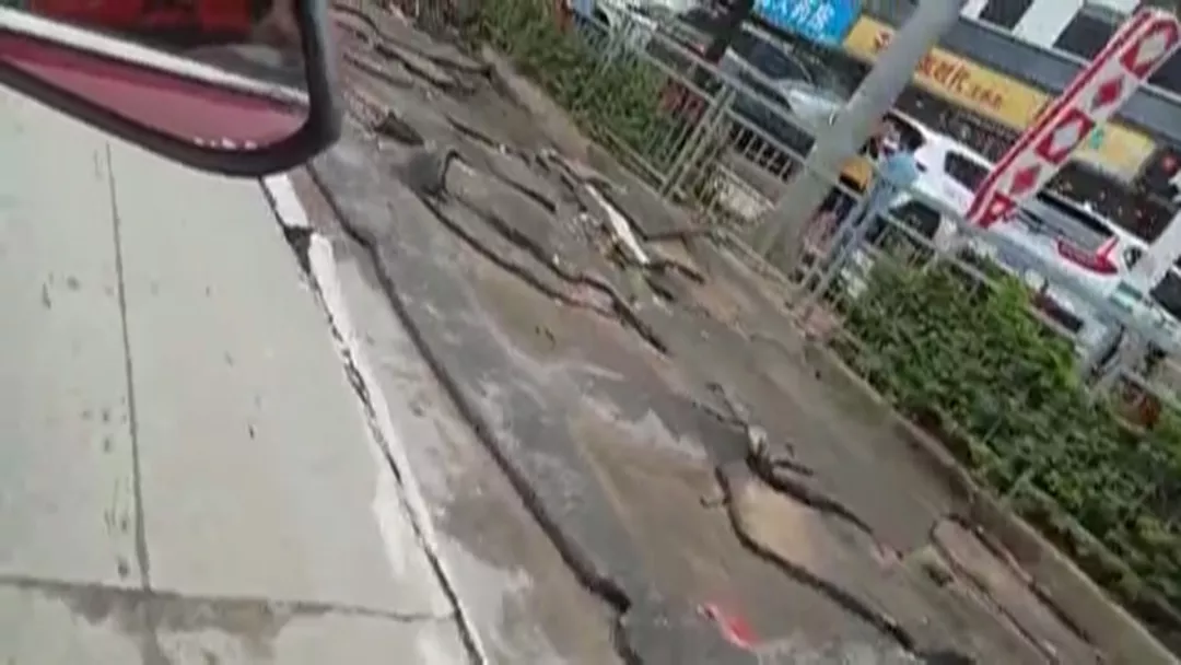 一場暴雨過后,寶安石巖石龍大道剛鋪好的瀝青路成了渣渣!