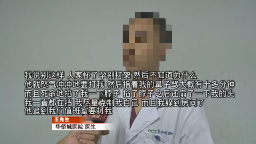 由于陳女士有孕在身,王醫(yī)生見狀,擔(dān)心陳女士會(huì)受到更嚴(yán)重的傷害,于是上前和石某理論,希望調(diào)停,沒想到自己也遭了殃。