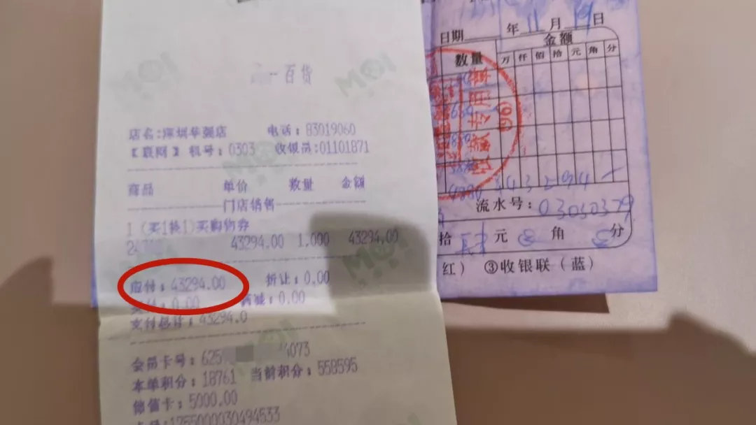 記者來(lái)到李小姐所在的女裝專柜了解情況。這個(gè)牌子衣服的標(biāo)價(jià),目前夏裝單價(jià)在2000-5000元,李小姐說秋冬裝單件4000-7000元左右,屬于高端服裝品牌,當(dāng)時(shí)店里的一位熟客顏女士,選了11件秋冬裝,總價(jià)4萬(wàn)3千多元。