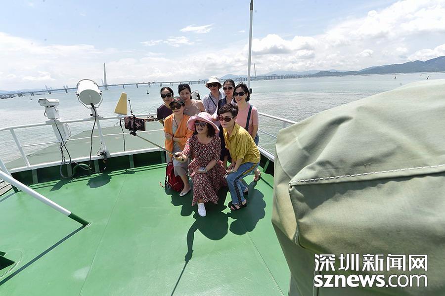 初次登船的市民非常興奮,拿起自拍桿與船只合影留念