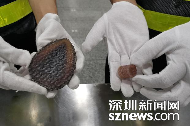 5月13日,一名30歲左右的男性旅客自福田口岸旅檢大廳入境,海關(guān)關(guān)員發(fā)現(xiàn)該男子行李不多,手里拎著一個(gè)塑料袋,神情有些緊張,有意躲避海關(guān)檢查,便將其列為挑查對(duì)象。經(jīng)檢查,關(guān)員在當(dāng)事人攜帶的塑料袋內(nèi)查獲疑似犀牛角制品。