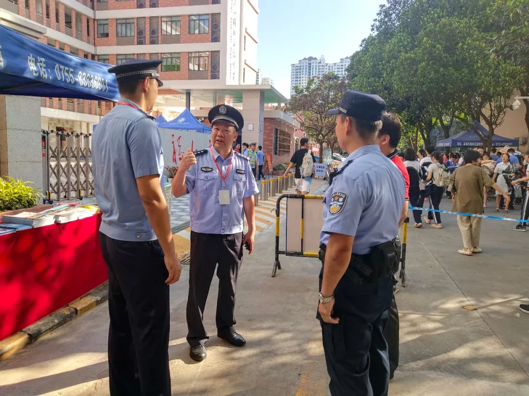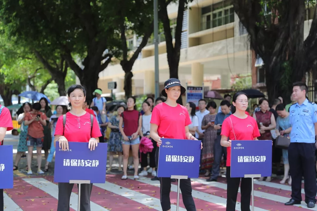 考試開始和結(jié)束時,在深圳實(shí)驗(yàn)學(xué)校中學(xué)部的考場外,家長們自發(fā)組織的義工服務(wù)隊(duì)也正在有序地維護(hù)著考場外的秩序。通心嶺派出所積極與本次家長義工服務(wù)隊(duì)的成員溝通,在考試結(jié)束后散場時能夠快速緩解人流,保證考場周邊的秩序。