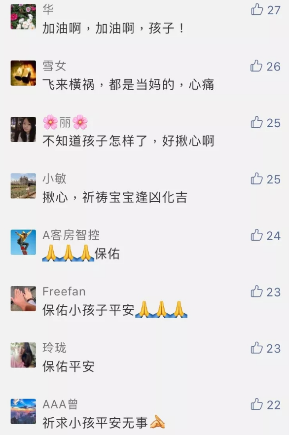 孩子,你看,有這么多叔叔阿姨給你加油呢