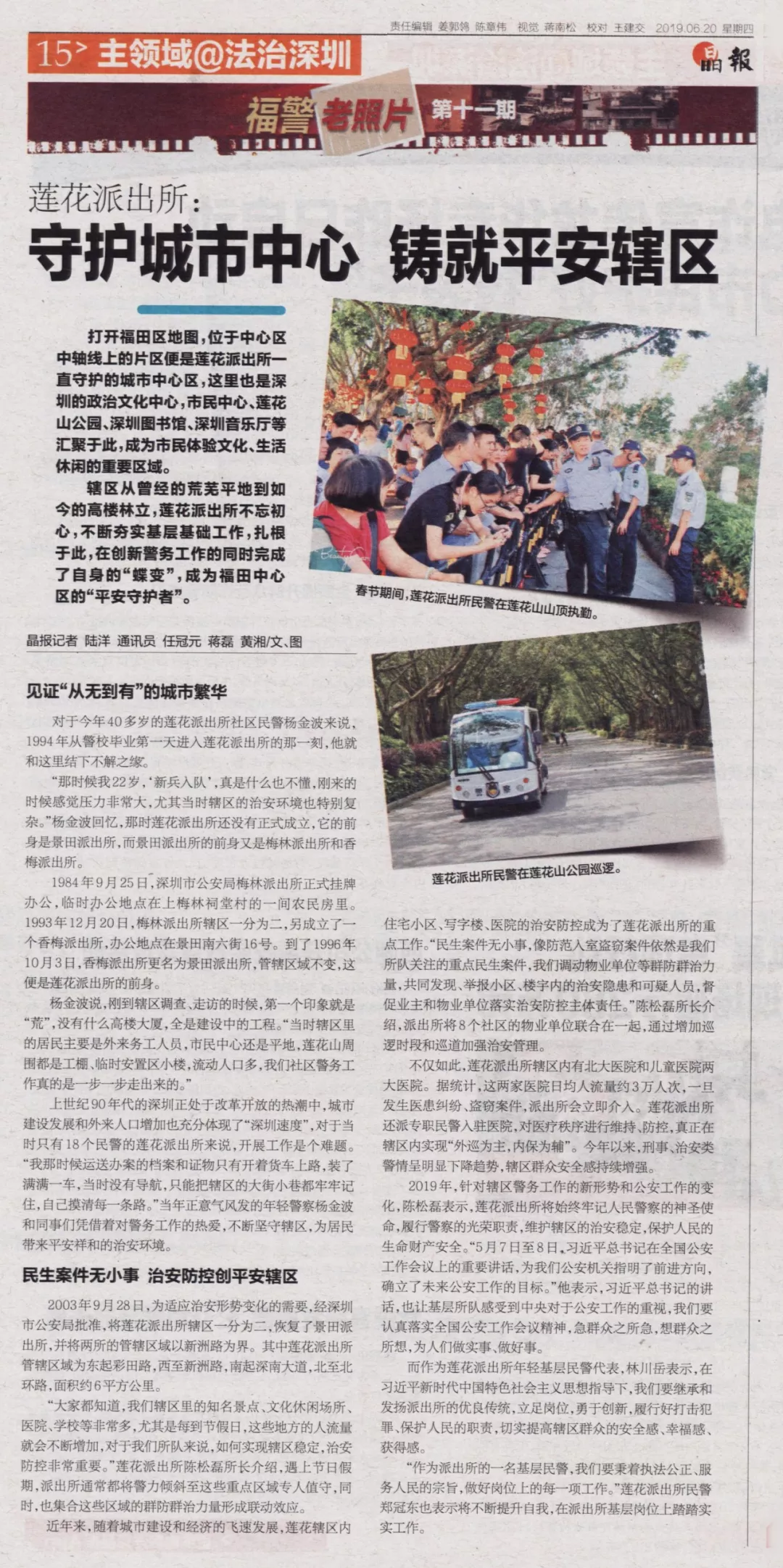 轄區(qū)從曾經(jīng)的荒蕪平地到如今的高樓林立,蓮花派出所不忘初心,不斷夯實基層基礎(chǔ)工作,扎根于此,在創(chuàng)新警務工作的同時完成了自身的“蝶變”,成為福田中心區(qū)的“平安守護者”。