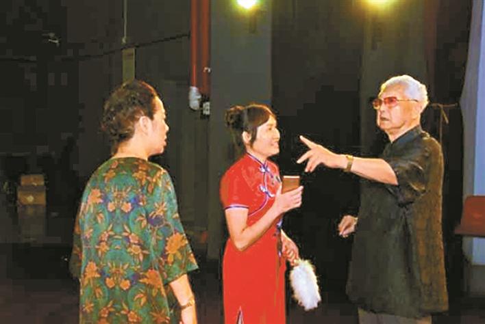 2019年4月,譚嗣英(右一)在2018~2019年深圳中老年藝術(shù)團(tuán)隊(duì)年度優(yōu)秀節(jié)目展演《祖國頌》系列節(jié)目彩排時(shí)現(xiàn)場(chǎng)指導(dǎo)。