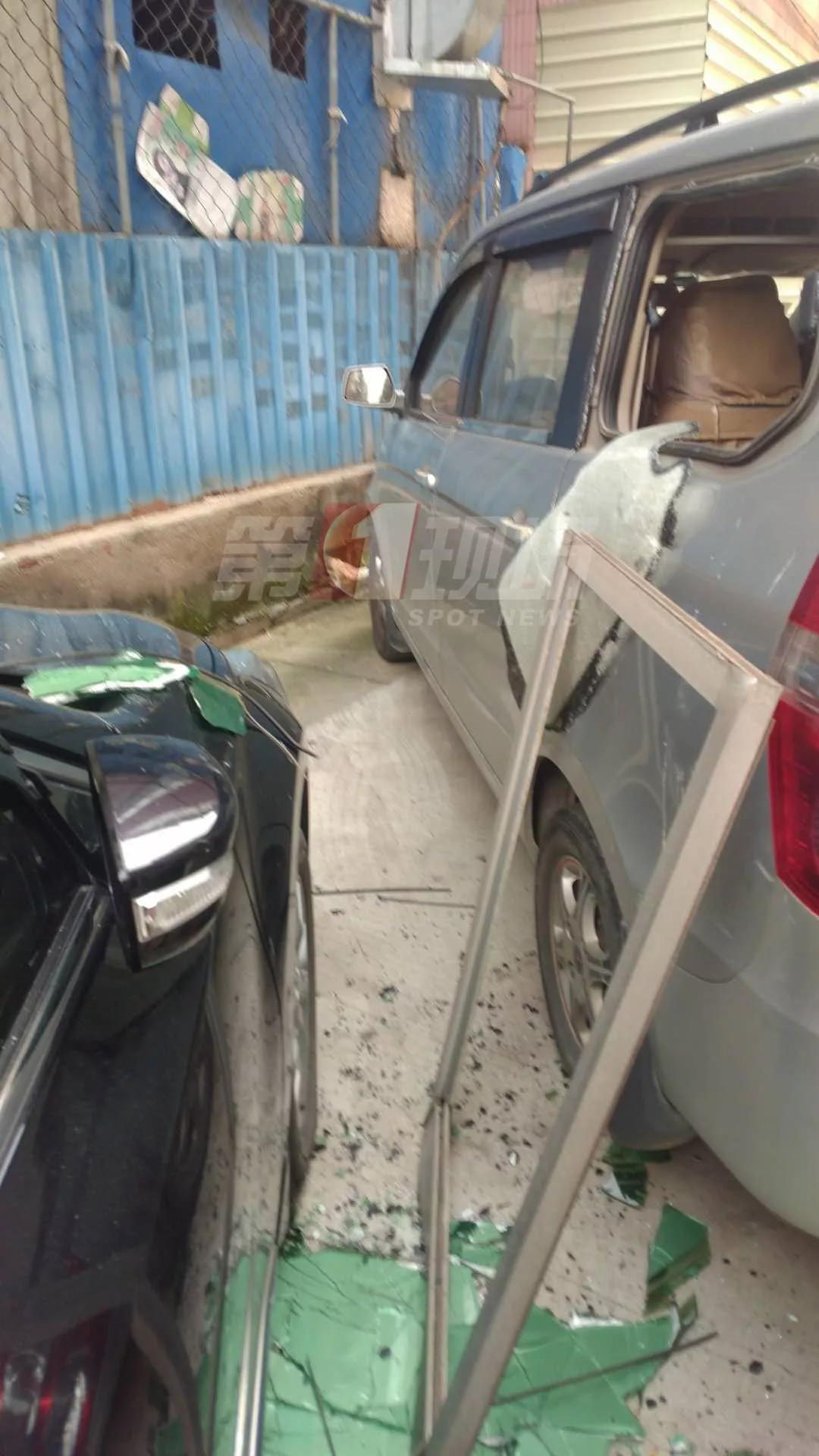 一聲巨響!玻璃窗4樓墜下砸中小車,車主不知找誰賠!