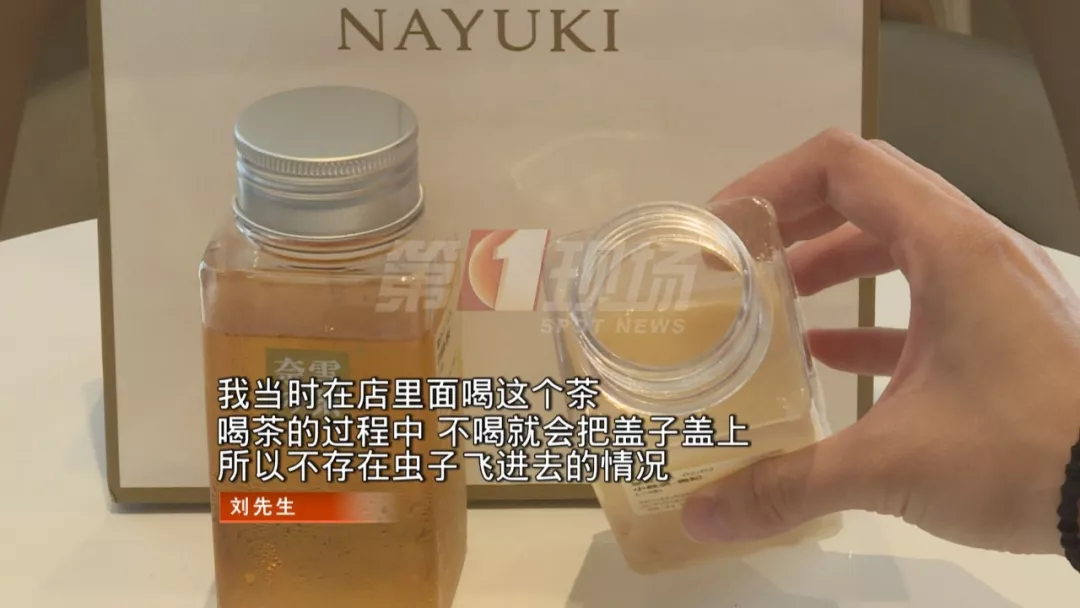 據(jù)劉先生介紹,他點的是當季招牌產(chǎn)品“霸氣小荔荔”,這款飲料有一層厚厚的奶蓋,所以起初沒看到,喝到一半才發(fā)現(xiàn)竟然有蟲子。劉先生擔(dān)心的是,會不會已經(jīng)喝了一些小蟲進肚?
