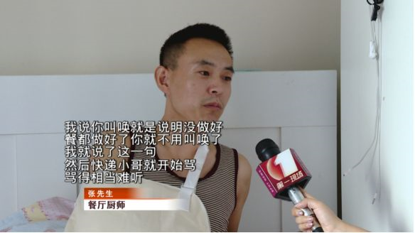 本月11日上午十點(diǎn)左右,當(dāng)時(shí)餐廳接到第一單美團(tuán)外賣的訂單,騎手剛進(jìn)店就開始催單,幾分鐘之后開始謾罵前臺服務(wù)員。