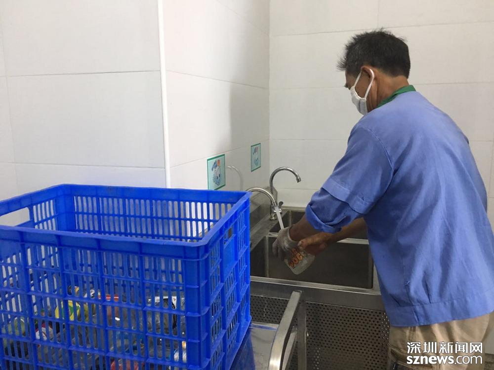 鄧伯今年60歲,是來深圳帶孫子的,因為老伴能幫忙,所以他應聘成為了一名小區(qū)清潔員。小區(qū)實行垃圾分類一年多以來,鄧伯工作輕松了很多。每天他只需巡視幾遍垃圾桶,將滿了的垃圾裝在框里帶回暫存點,進行二次分揀和清洗后,再將垃圾桶歸放原處;等物業(yè)在微信平臺上聯(lián)系好運送車輛,協(xié)助運送人員運走垃圾就行。