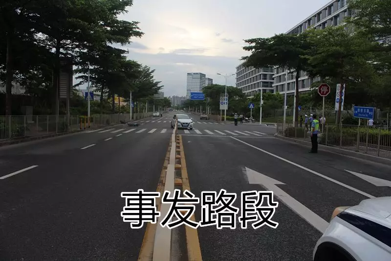 事故現場位于坪山區(qū)錦繡東路與盧輝路交匯路口,道路為機動車道、普通路段的平直道路,路面完好、干燥,照明條件為夜間有路燈照明,干燥瀝青路面,交通信號方式為指示標線、指示標志,道路類型為一般城市道路。