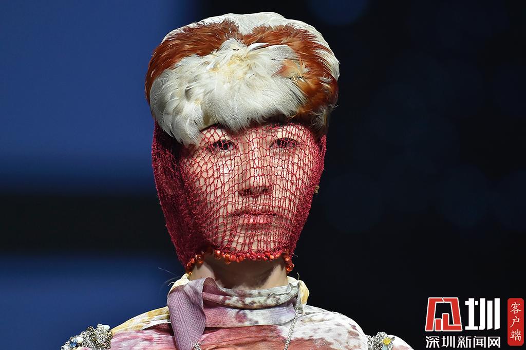時裝優(yōu)秀學(xué)生組展示環(huán)節(jié),一位模特以獨特的造型亮相