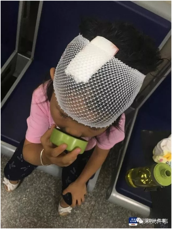 隨后女童被父母送往附近社康醫(yī)治,但因傷口太深社康無法治療,遂被送往龍華人民醫(yī)院救治。
