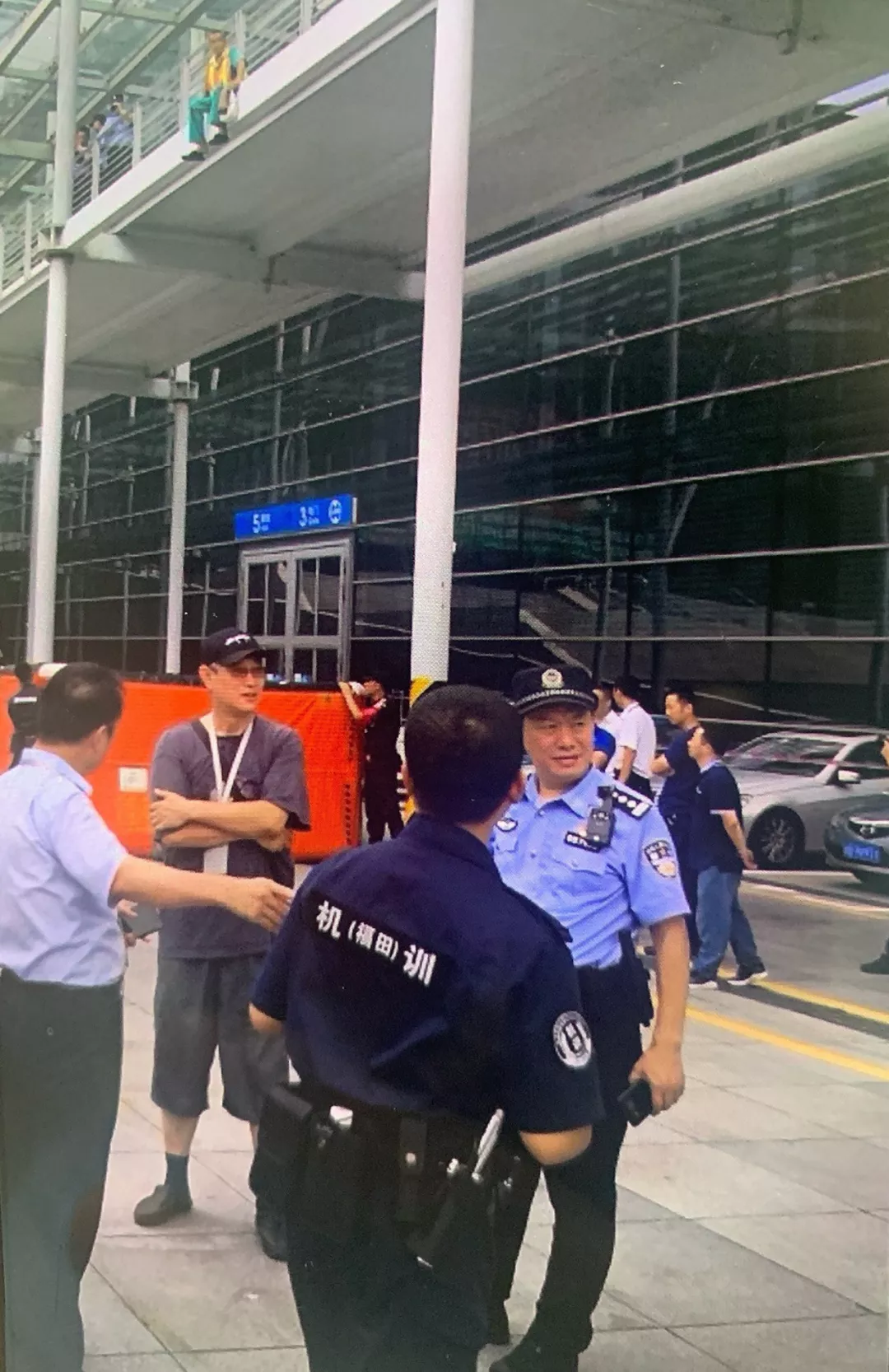 接到報(bào)警后,值班局領(lǐng)導(dǎo)張保軍處長(zhǎng)、福田派出所黃浩教導(dǎo)員、民警吳第迅速趕到現(xiàn)場(chǎng)?!拔覀兊竭_(dá)現(xiàn)場(chǎng)后,就看到那名男子大聲地呼喊著‘我要權(quán)益!’,并且踏出一只腳,整個(gè)人搖搖晃晃的,非常危險(xiǎn)!所以我們第一步先是穩(wěn)定他的情緒?!眳堑诰僬f(shuō)道。