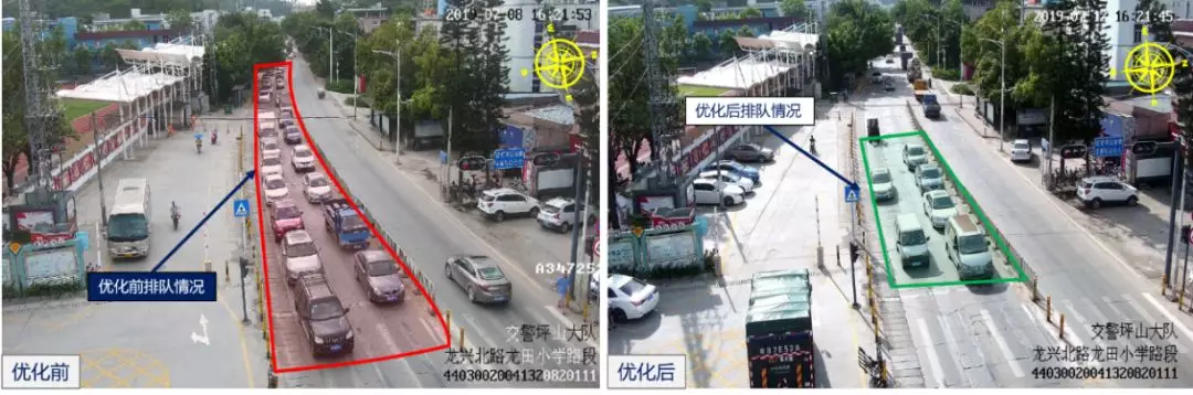龍興北/龍?zhí)镄W(xué)路口優(yōu)化前后