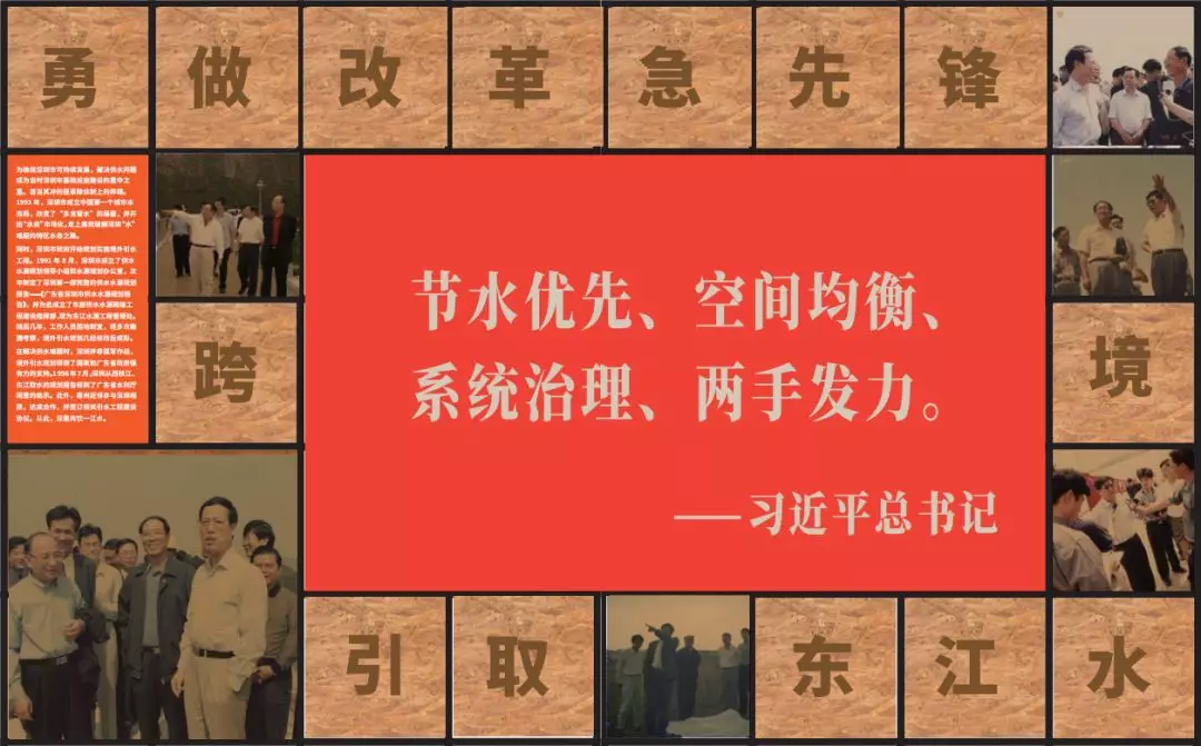 第二部分以“勇做改革急先鋒跨境引取東江水”為題,通過(guò)1992年至2004年的東江水源工程規(guī)劃報(bào)告及規(guī)劃圖、踏勘團(tuán)隊(duì)的工作影像等歷史資料,體現(xiàn)深惠兩地領(lǐng)導(dǎo)對(duì)工程的重視和工程規(guī)劃的前瞻性。