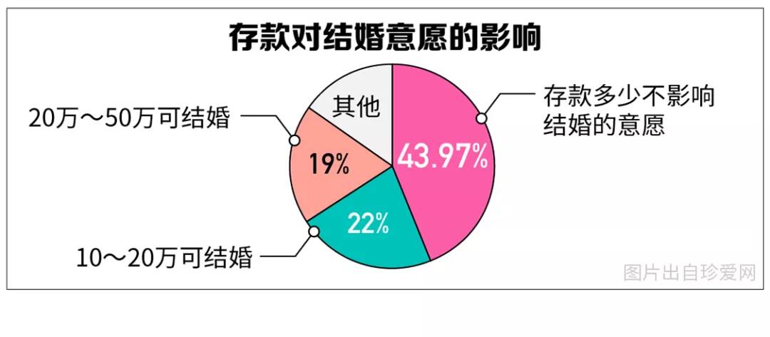調(diào)查顯示,近7成90后單身青年認(rèn)為經(jīng)濟(jì)水平不是唯一重要的擇偶標(biāo)準(zhǔn)。近半數(shù)(43.97%)90后認(rèn)為存款多少不影響結(jié)婚的意愿;其中,男生(53.87%)認(rèn)為存款多少不影響結(jié)婚的比例高于女性(37%)。在結(jié)婚籌備上,女性對(duì)經(jīng)濟(jì)的考量多過(guò)男性。