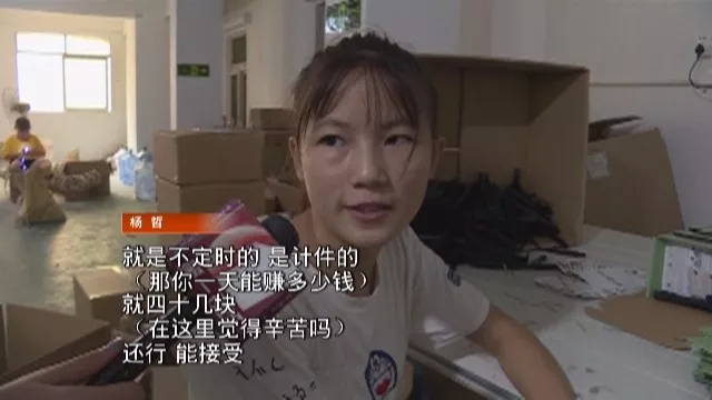 這個正在做包裝的少女叫做楊哲,她只有15歲來自湖南,剛剛初中畢業(yè),在這個小作坊里她每天都干著不同的小活,以按件計費的方式,賺取一點費用,以貼補家用。