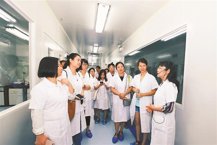 2018年,王多加(右一)在深圳市農(nóng)產(chǎn)品質(zhì)量安全檢驗(yàn)檢測(cè)中心的“實(shí)驗(yàn)室開(kāi)放日”為市民代表介紹實(shí)驗(yàn)室的檢測(cè)工作。