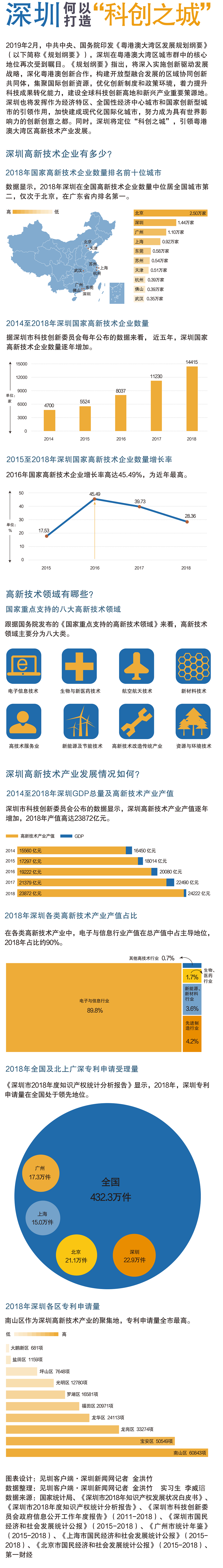 2018年,深圳國家高新技術(shù)企業(yè)數(shù)量高達(dá)1.44萬家,位居全國第二,僅次于北京,廣東省內(nèi)排名第一。
