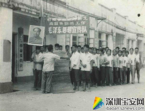 一張泛黃的老照片中,大多數(shù)人物都處在風華正茂的年齡,赤著腳,舉著宣傳的橫幅,為血絲蟲病防治工作進行宣傳,生動地再現(xiàn)了“赤腳醫(yī)生”年代傳染病高居不下,生活艱苦不易,缺醫(yī)少藥的場景。盡管當時的醫(yī)療設備十分簡陋,除了一個藥箱,幾片普通的藥片,一支針筒,幾塊紗布,別的就少得可憐??稍倏嘣匐y,這些赤腳醫(yī)生們,仍是盡職盡責,滿腔熱情地為人民服務。