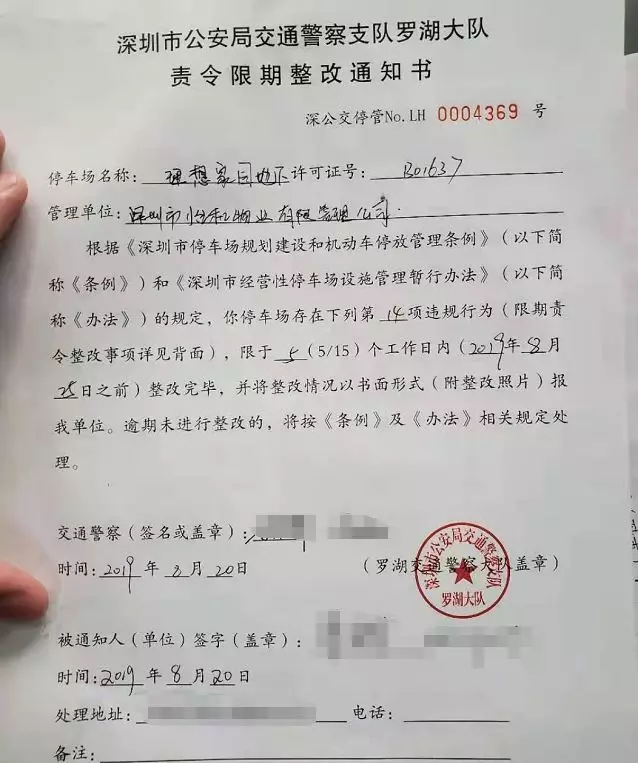 深圳交警前往深圳和平新居停車場進行隱患排查,發(fā)現(xiàn)該停車場存在標線不清晰不規(guī)范、車輛亂停亂放、經營許可證過期(已重新提交資料申請)等問題,民警現(xiàn)場開具責令整改通知書,限期15天內完成整改。