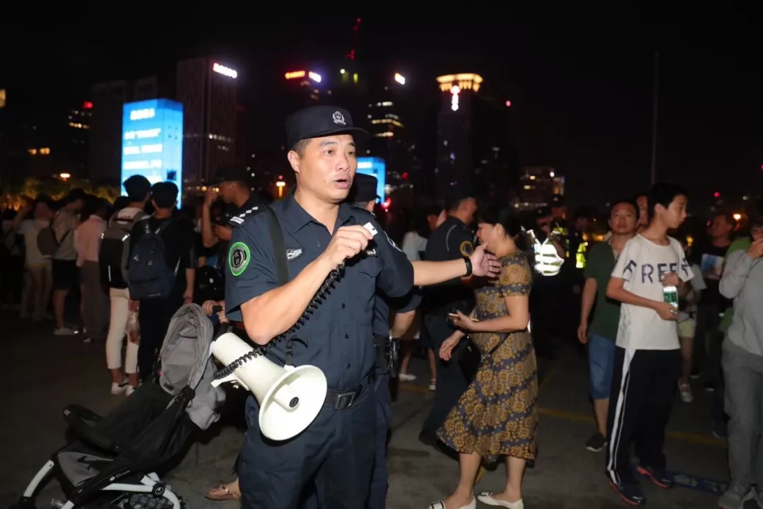 “注意安全,不要擁擠,照顧好老人和小孩。”某廣場(chǎng)擁擠的人群中,福田公安分局機(jī)動(dòng)訓(xùn)練大隊(duì)副大隊(duì)長黃裕青拿著大喇叭喊道。他的臉熱得通紅,汗珠大顆大顆地往下掉,但卻始終沒停下巡邏的腳步。嗓子沙啞了,他便喝口水潤潤,繼續(xù)在人群中穿梭,在維護(hù)秩序的同時(shí),為有需要的人提供幫助。