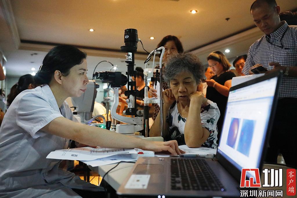 深圳市眼科醫(yī)院防盲科副主任曾琨正在給職工檢查