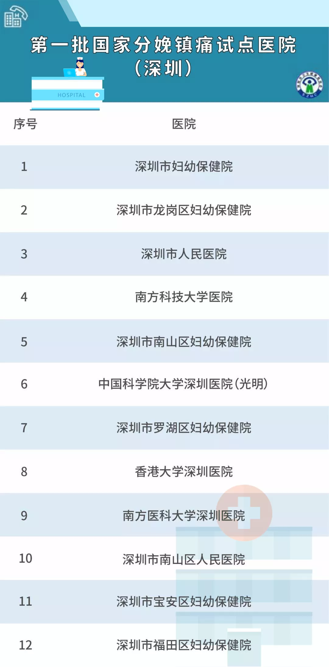 據(jù)悉,3月20日,國(guó)家衛(wèi)生健康委辦公廳印發(fā)《第一批國(guó)家分娩鎮(zhèn)痛試點(diǎn)醫(yī)院名單》,確定了913家醫(yī)院作為第一批國(guó)家分娩鎮(zhèn)痛試點(diǎn)醫(yī)院。其中,深圳有12家醫(yī)院入榜。