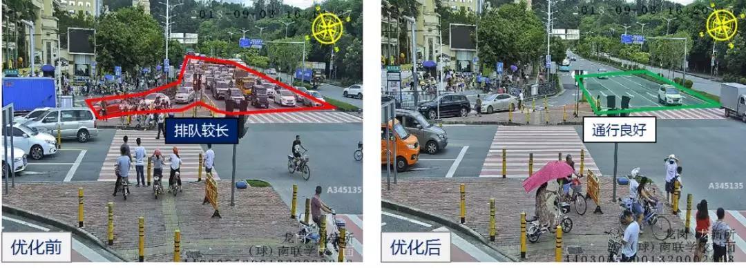 臨近放學(xué)時(shí)段,龍崗區(qū)愛(ài)南/植物園路口東面車輛增多,存在擁堵情況,深圳交警立即步伐保持該路口,增加?xùn)|面放行時(shí)間,15分鐘后路口恢復(fù)正常。