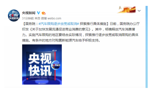國(guó)務(wù)院說(shuō)了未來(lái)汽車(chē)限購(gòu)逐步放寬或取消但正在探索推行具體措施