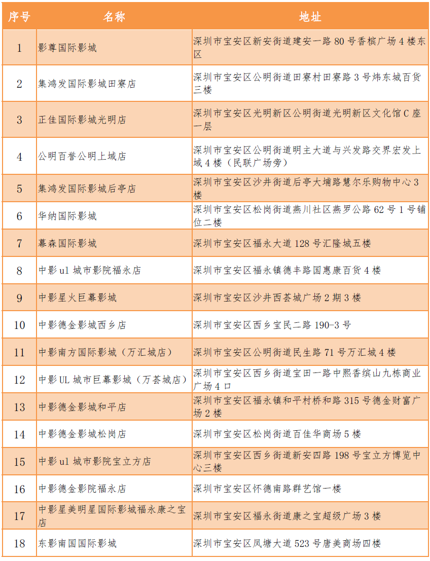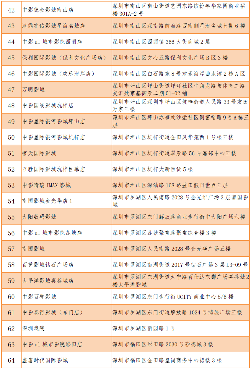 加入《電影票退改簽標(biāo)準(zhǔn)》的影院名單