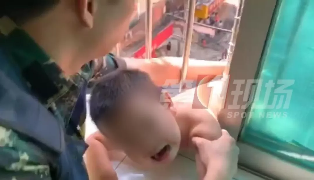 原標(biāo)題:驚險(xiǎn)!兩歲男童身懸半空,關(guān)鍵時(shí)刻,他們一腳破門!